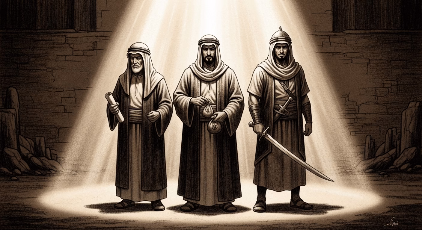 After these profound revelations, Allah issues the final command: all three—the reciter of the Qur’an, the wealthy person, and the fighter—are to be taken and cast into the Fire. Their forms become increasingly dim and shadowed as unseen forces lead them away from the radiant beam of light, towards a distant, dark, and ominous glow. Their actions, though outwardly impressive, lacked the crucial element of sincerity, leading to a tragic end.